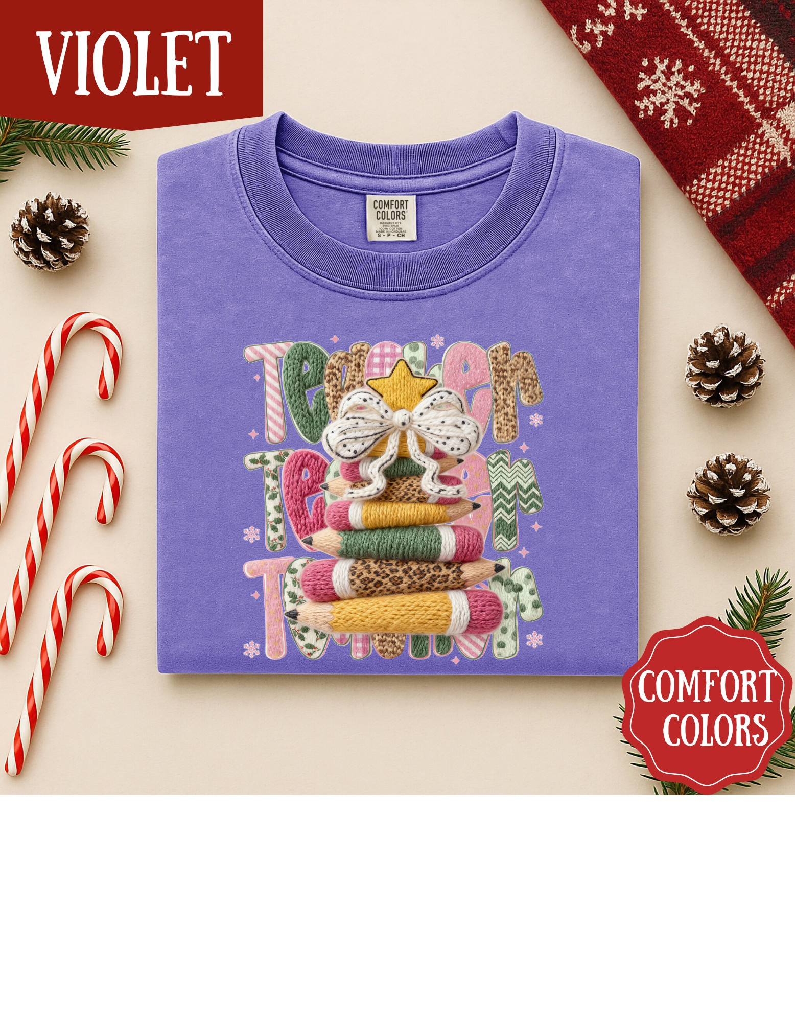 Latchhook Pencil Christmas Teacher Graphic T-shirt